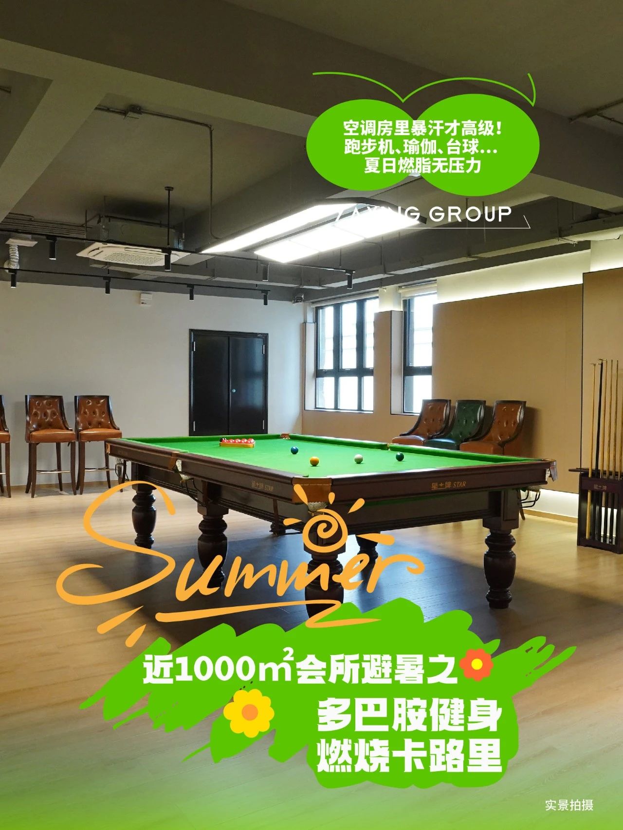 1000㎡多巴胺健身:空調房里暴汗才高級!跑步機、瑜伽、臺球… 夏日燃脂無壓力💪